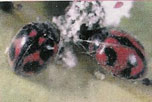 coccinelle, Rodolia cardinalis, est particulièrement friande de cette
